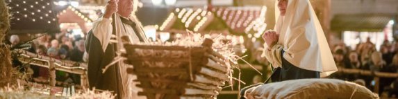 Seit nunmehr über 30 Jahren ist die „Lebende Krippe“ eine Tradition, die von den Menschen in um Andernach mit großer Freude erwartet und bestaunt wird. 1992 wurde sie von der Prinzengarde 1896 Andernach e.V. ins Leben gerufen und von Manchem als „verrückte Idee“ bezeichnet. Heute ist sie in Andernach nicht mehr aus der Adventszeit wegzudenken. Und so entsteht jedes Jahr im November auf dem historischen Marktplatz ein detailreich verzierter, lebensgroßer Krippenstall. Dort finden dann an allen Adventswochenenden um jeweils 15 Uhr und 18 Uhr die Aufführungen der „Lebenden Krippe“ statt. Zwischen Ziegen und Schafen präsentieren ehrenamtliche Laiendarsteller und -darstellerinnen in aufwändiger Kostümierung die klassische Weihnachtsgeschichte.